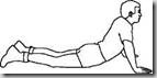 Lie face down, palms on the deck under your shoulders. Gently lift torso with arms and lower back muscles. Lift only until your pelvis is off the deck. Stretches the abdominals.